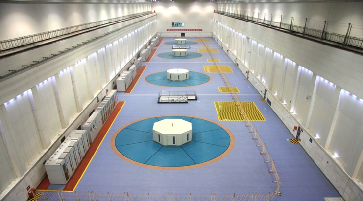 >> 钢筋混凝土引水隧洞,最大水头748m,最大渗漏量分别为5.01L/s和3.63L/s;地下厂房洞群总渗漏量4.85L/s,为国内领先水平。(上图为电站地下洞室群)