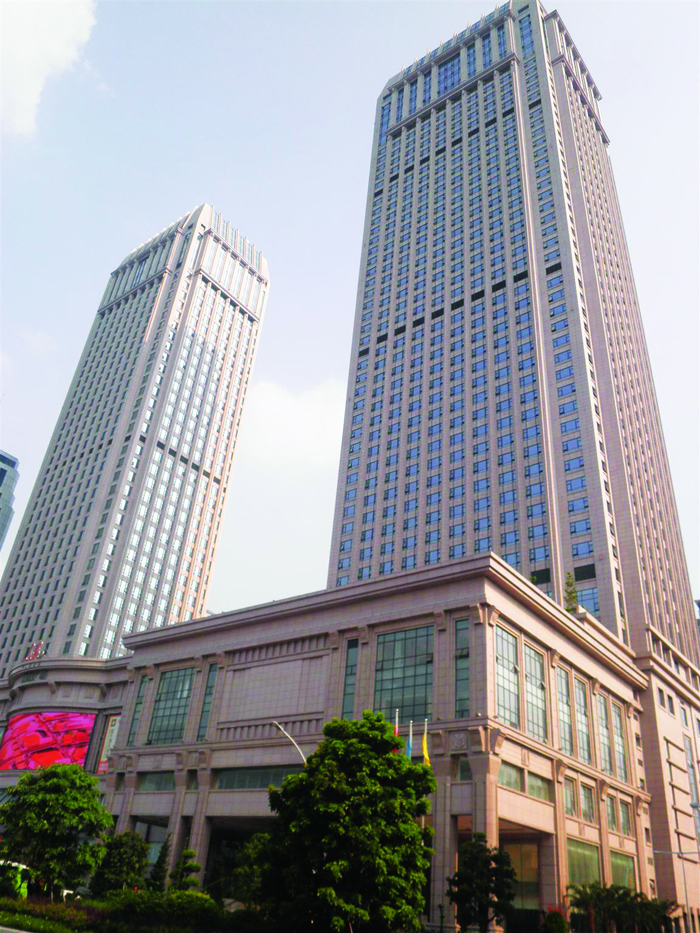 功能定位:中山市标志性工程建筑,为五星级酒店、高级办公楼及商业广场为一体的大型综合性建筑群。地下室两层为停车场,一至七层为商用、宴会厅及酒店会所等,两栋塔楼分别为五星级酒店及高级办公楼。