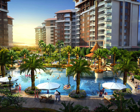 雅居乐剑桥郡处于广州雅居乐花园东北部,其西端是南沙港快线,与广州大学城隔江相望,项目总占地近1000亩,有2公里长的江岸线,三面环山。