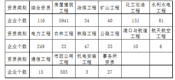 *本统计涉及专业资质工程类别的统计数据,均按主营业务划分。