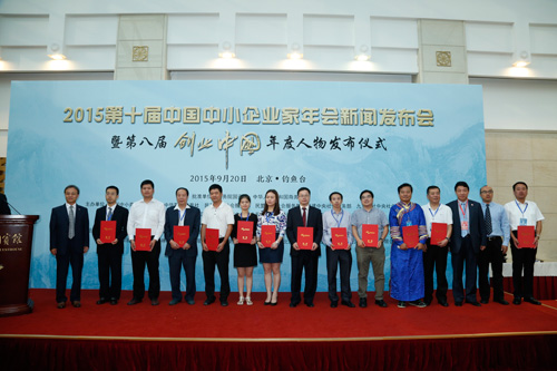 在新闻发布会上,2015第八届创业中国年度人物也正是发布。经过长达三个月的网络投票及专家评审,探路者控投集团股份有限董事长盛发强,华夏投资集团陈建煌,北京京蒙高科干细胞技术有限公司董事长高锦,北京西贝餐饮管理有限公司总经理贾国龙,天颐中服(北京)老龄产业服务有限公司董事长陶瑩等多领域的30多位创业企业家代表脱颖而出。