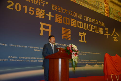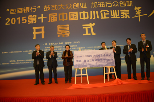 由中国中小商业企业协会联合中华职教社、中国商业联合会、民革中央、民盟中央、民建中央、九三学社中央等社会服务部门和清华大学经管学院EMBA中心联合举办,包商银行冠名的2015第十届中国中小企业家年会11月28日在北京人民大会堂开幕。全国人大常委会副委员长、民建中央主席、中华职业教育社理事长陈昌智出席会议并做重要讲话,十届全国人大常委会副委员长顾秀莲为“2016中国中小商业企业协会金融、信息联合服务平台”揭牌并宣布年会开幕。财政部副部长朱光耀,著名经济学家、国家税务总局原副局长许善达,央行货币政策委员会委员、清华大学经管学院副院长白重恩,包商银行董事长李镇西,齐商银行董事长杲传勇,重庆曙光产业园区管委会主任汪官蜀在年会开幕式上发表演讲;中共中央委员、中央社会主义学院党组书记叶小文在人文论坛发表主题演讲。工信部副部长冯飞委托中小企业局许科敏副局长做了书面讲话。全国政协副秘书长、民革中央副主席何丕洁,全国人大常委、民盟中央副主席龙庄伟,第十届中国中小企业家年会各组成单位领导以及中国中小商业企业协会理事会主要成员1400多人出席会议。中国中小商业企业协会常务副会长任兴磊,中华职业教育社总干事王金宝分别主持会议。