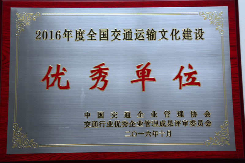 近日,从中国交通企业管理协会传来喜讯,公司被中国交通企业管理协会和交通行业优秀企业管理成果评审委员会联合授予“2016年度全国交通运输企业文化建设优秀单位 ”荣誉称号。至此,公司已连续三年获此殊荣。